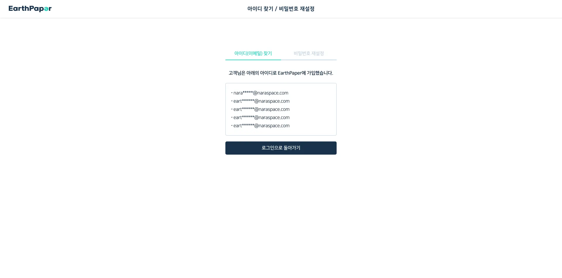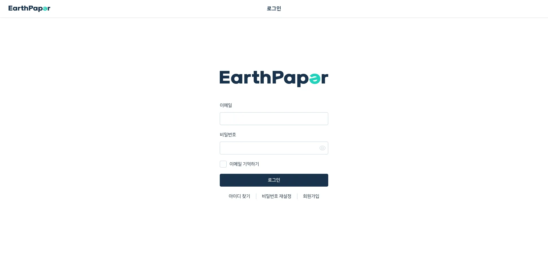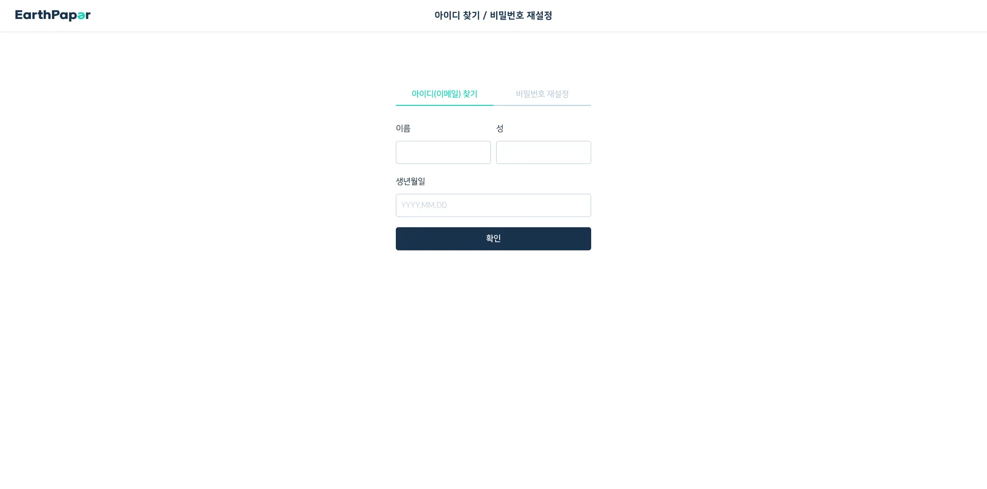 EarthPaper 로그인 페이지에서 아이디 찾기 버튼을 클릭해 주세요.